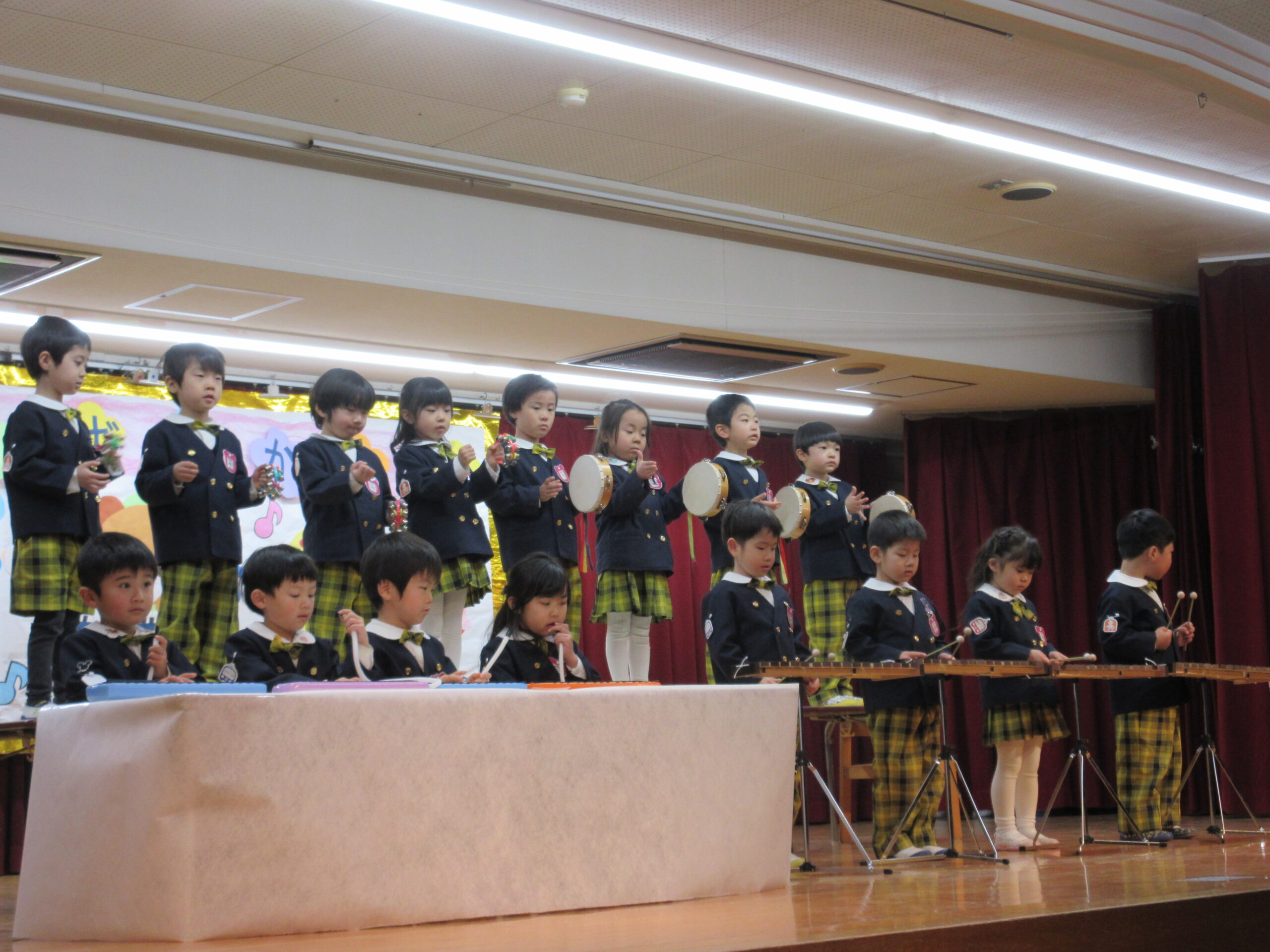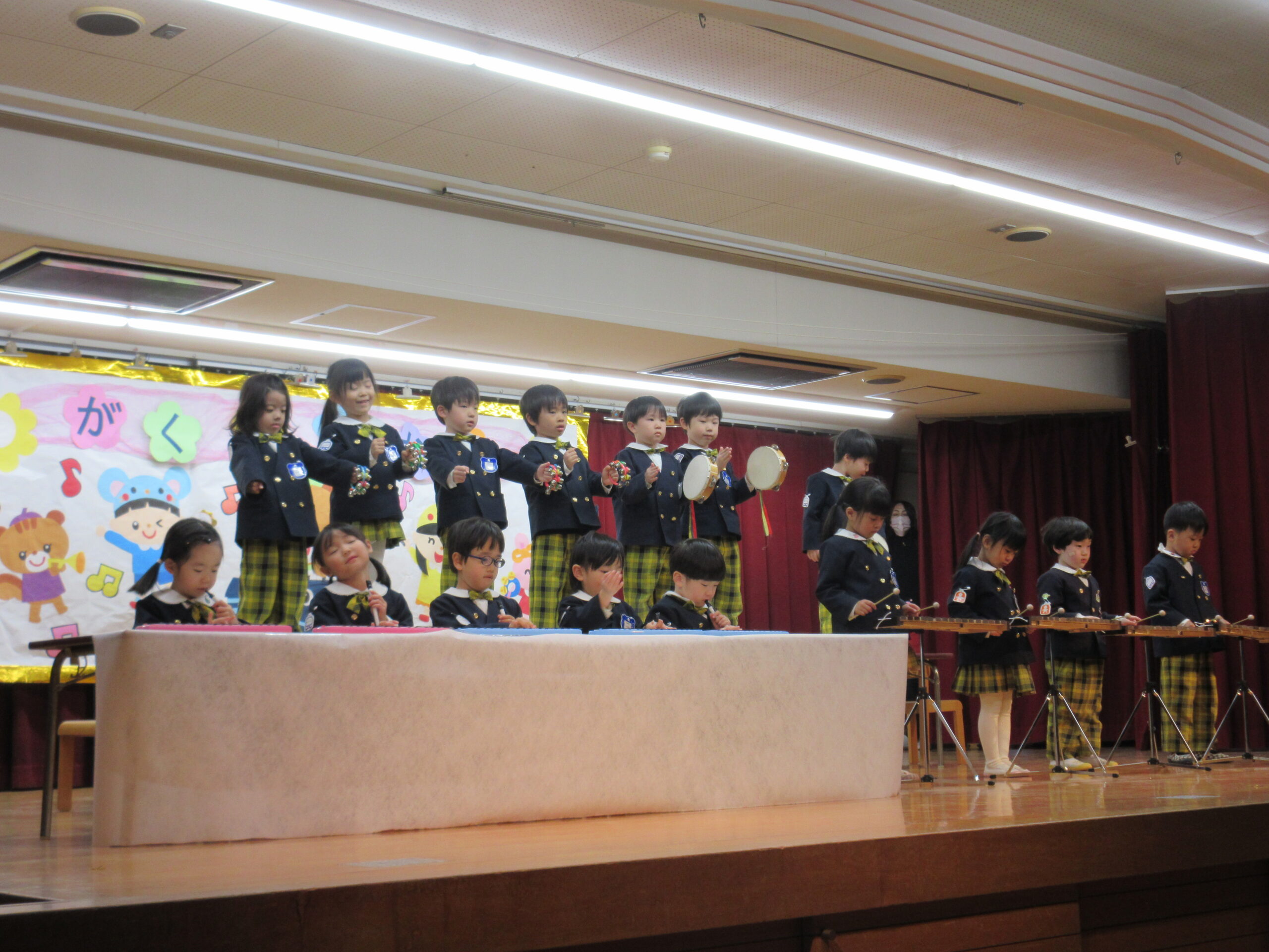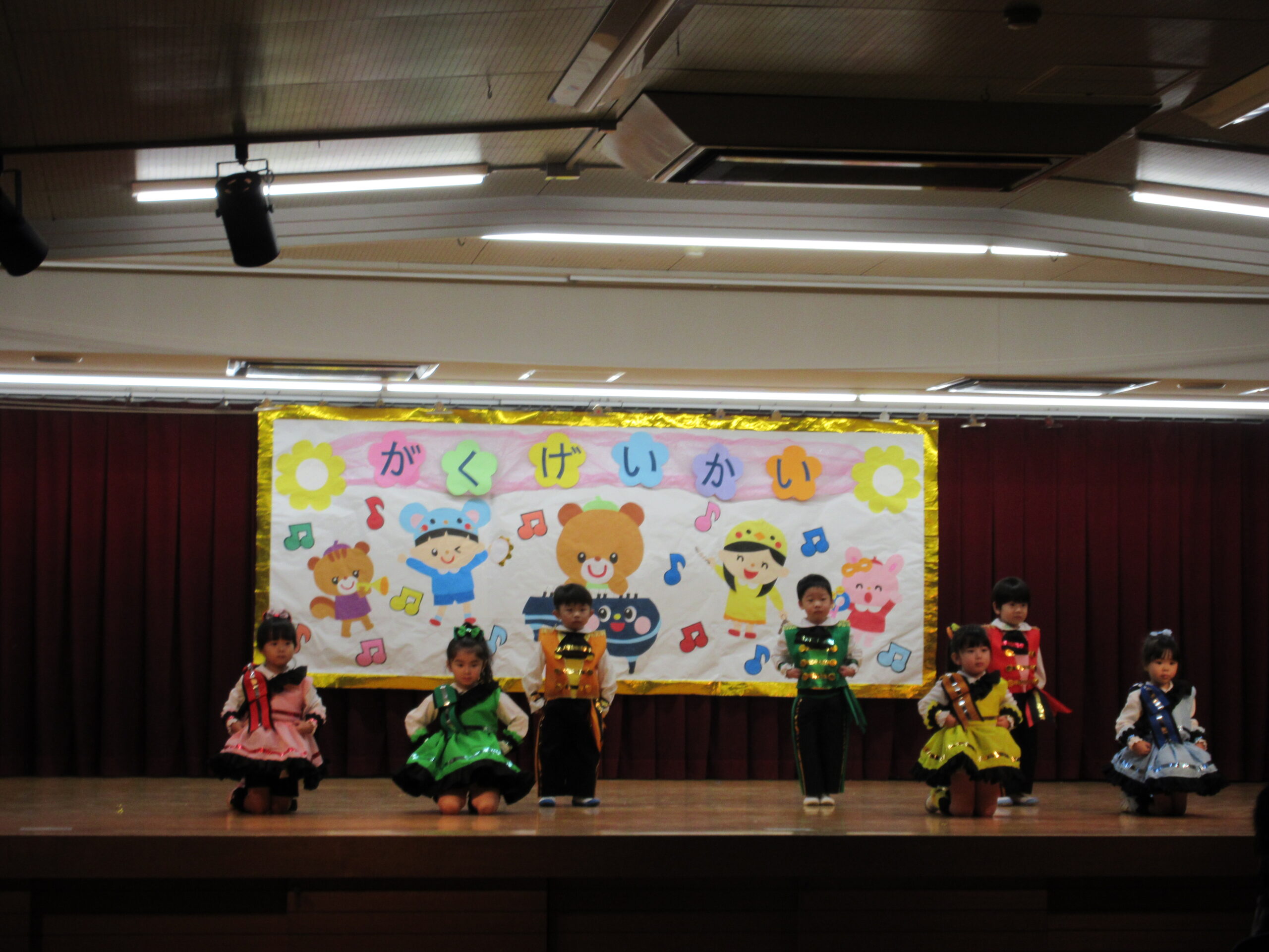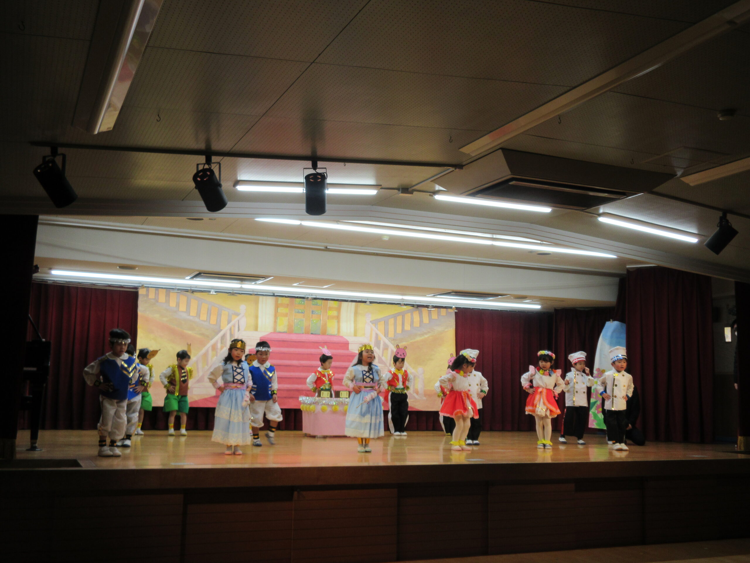 今日は学芸会の総練習があり、子どもたちは特別な衣装に身を包んで舞台に立ちました。