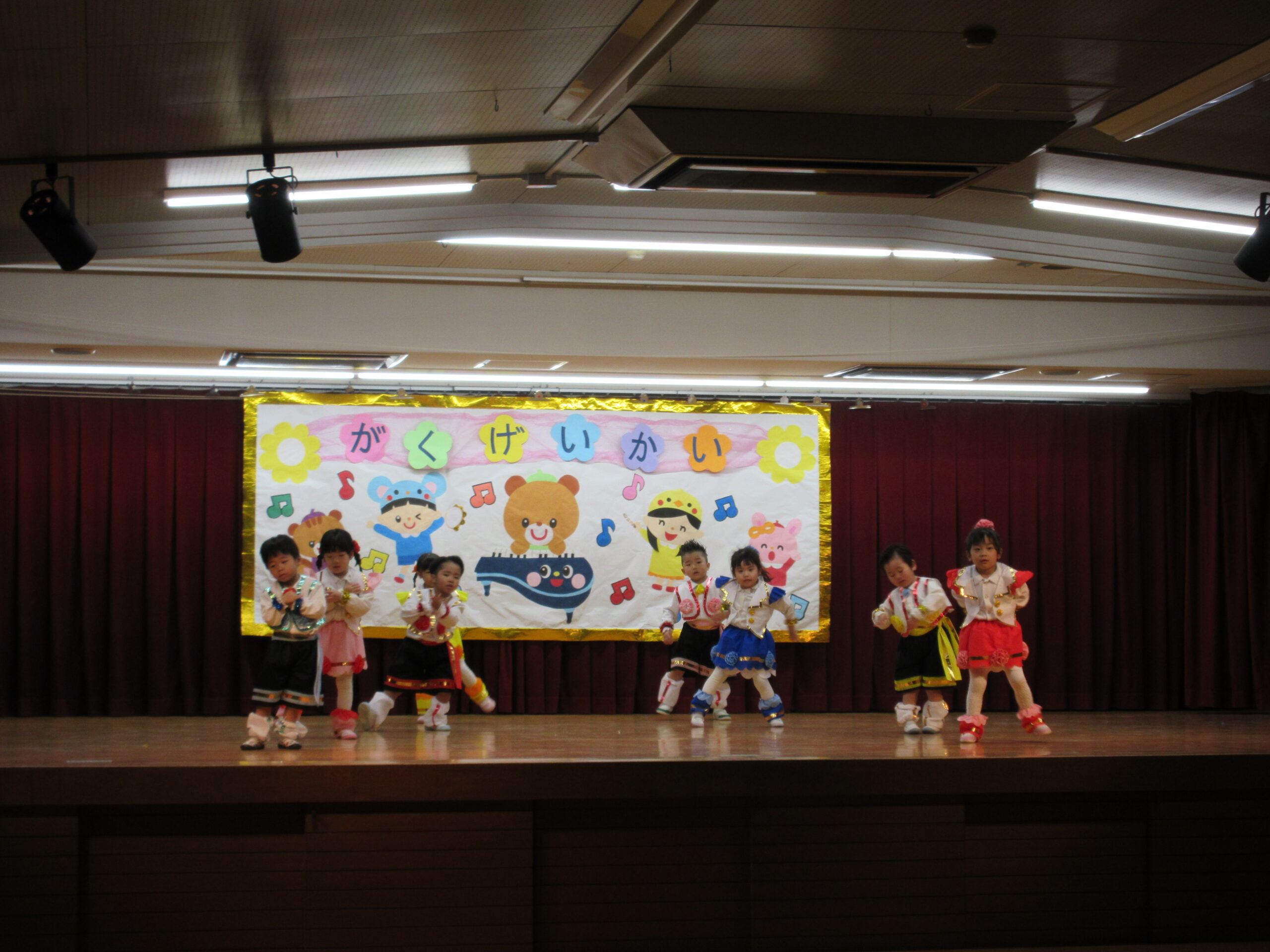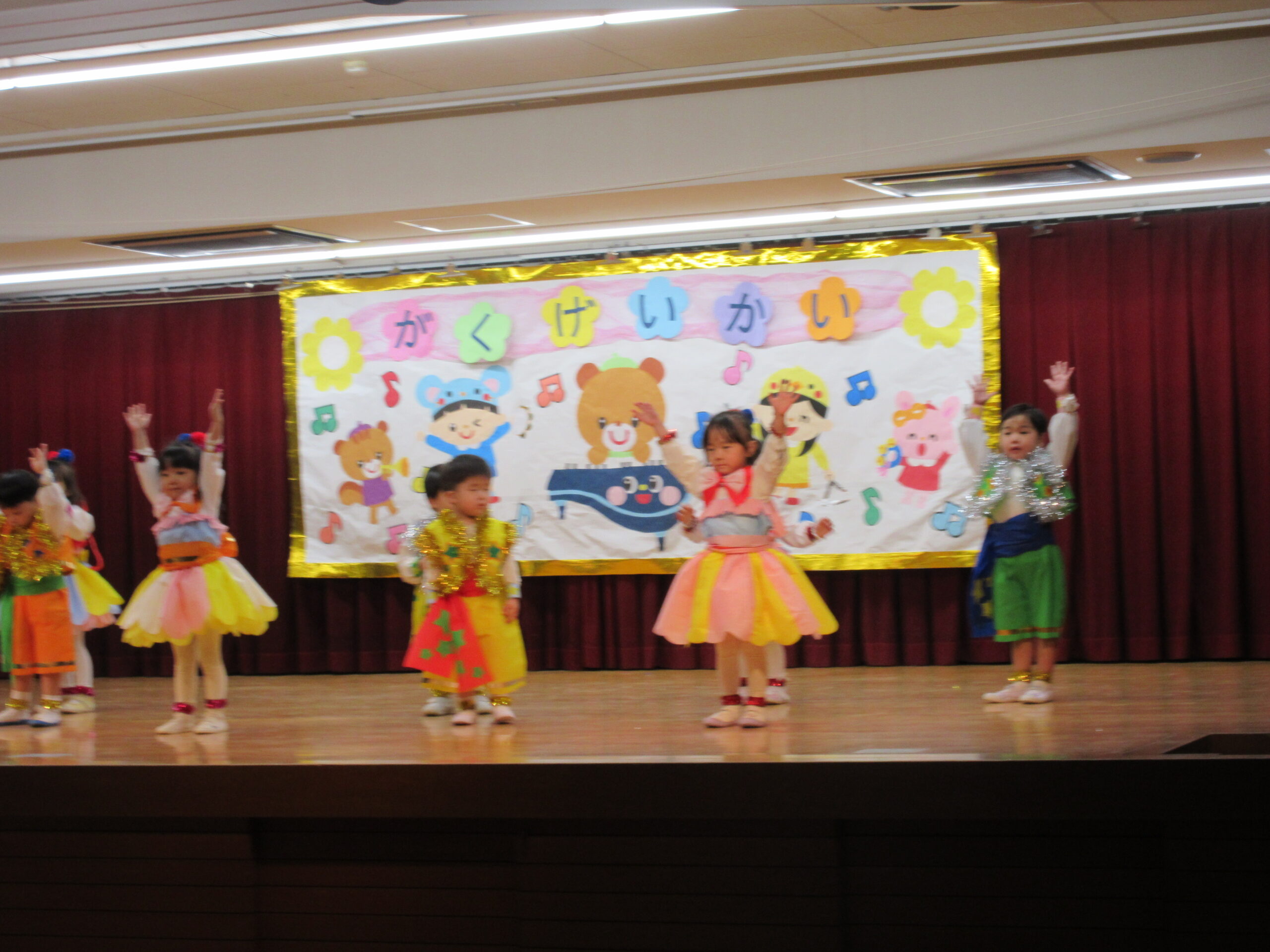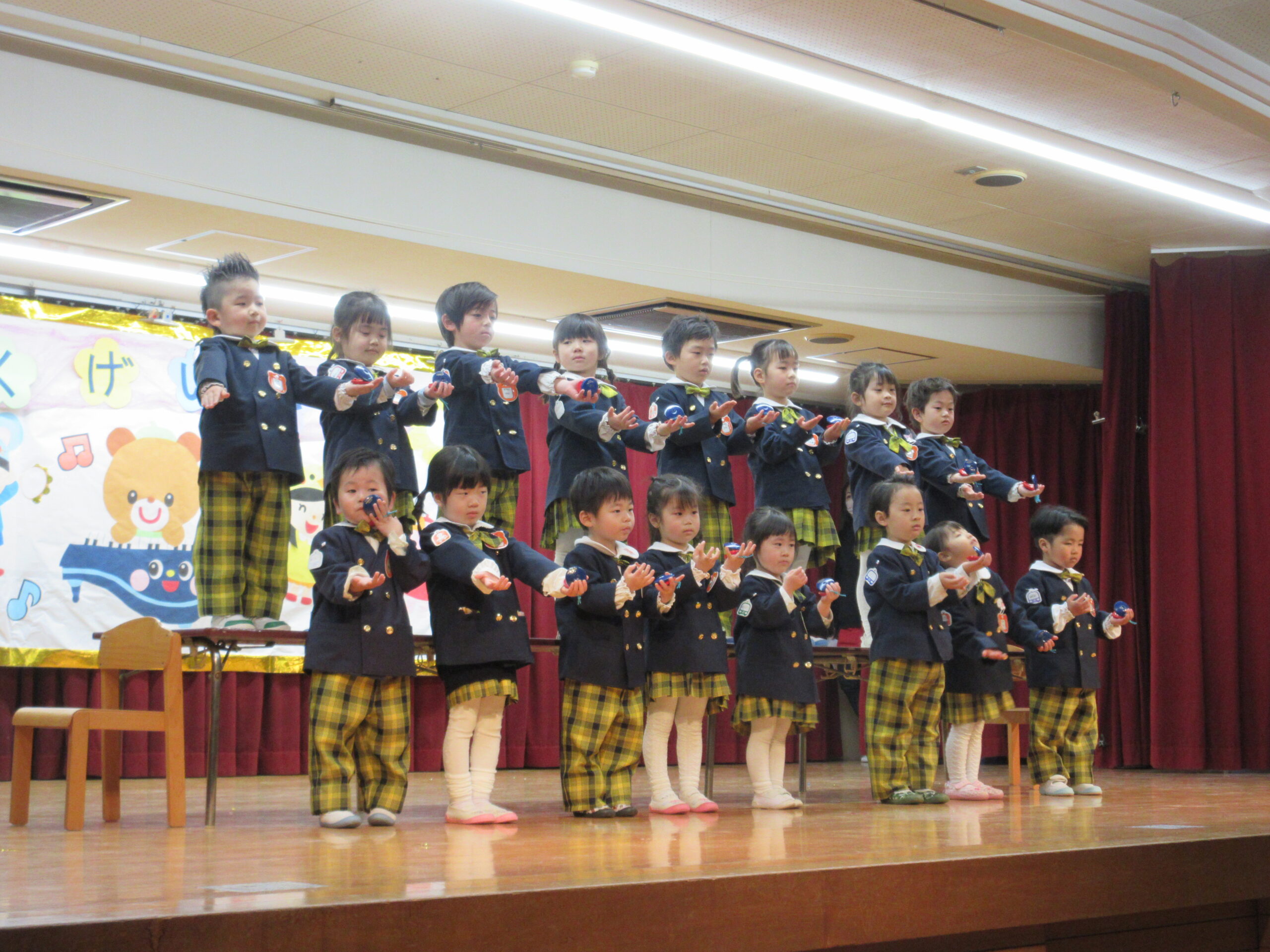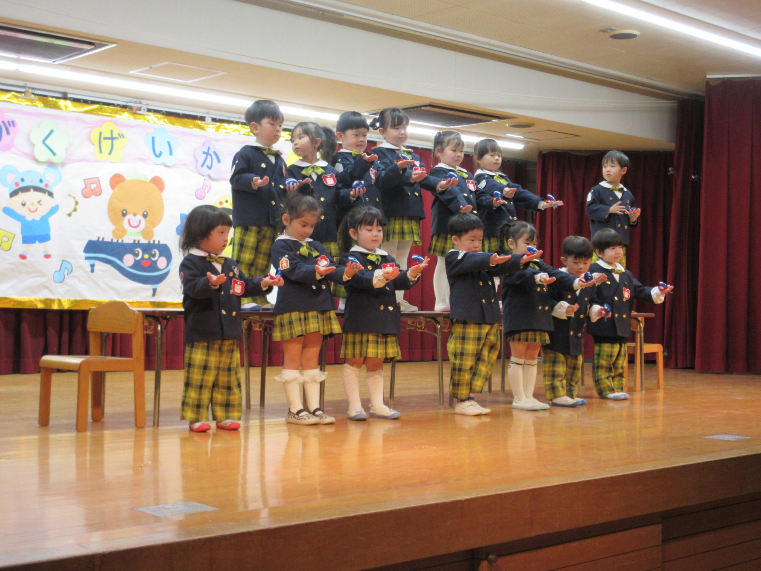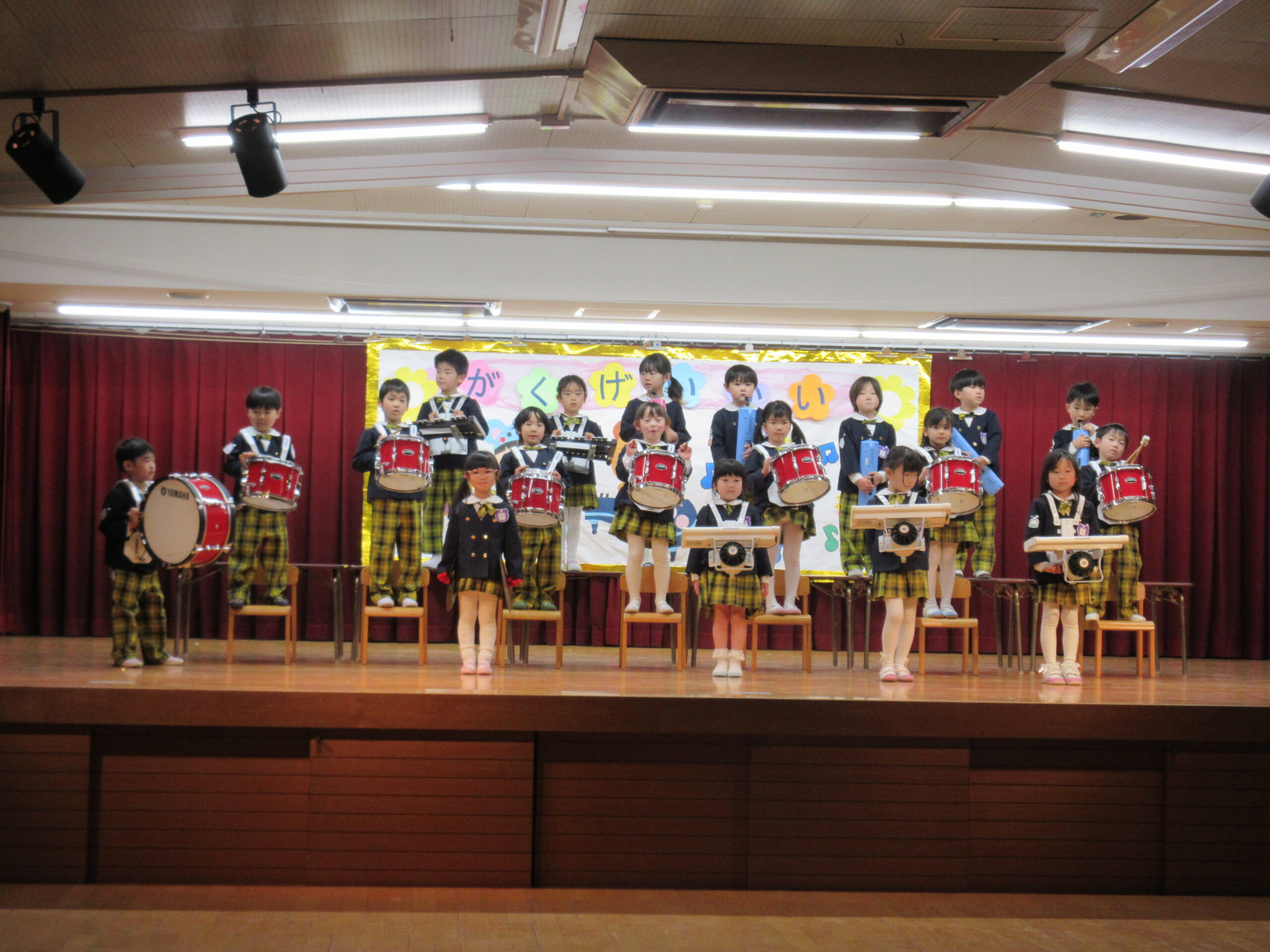 今日は学芸会の総練習があり、子どもたちは特別な衣装に身を包んで舞台に立ちました。