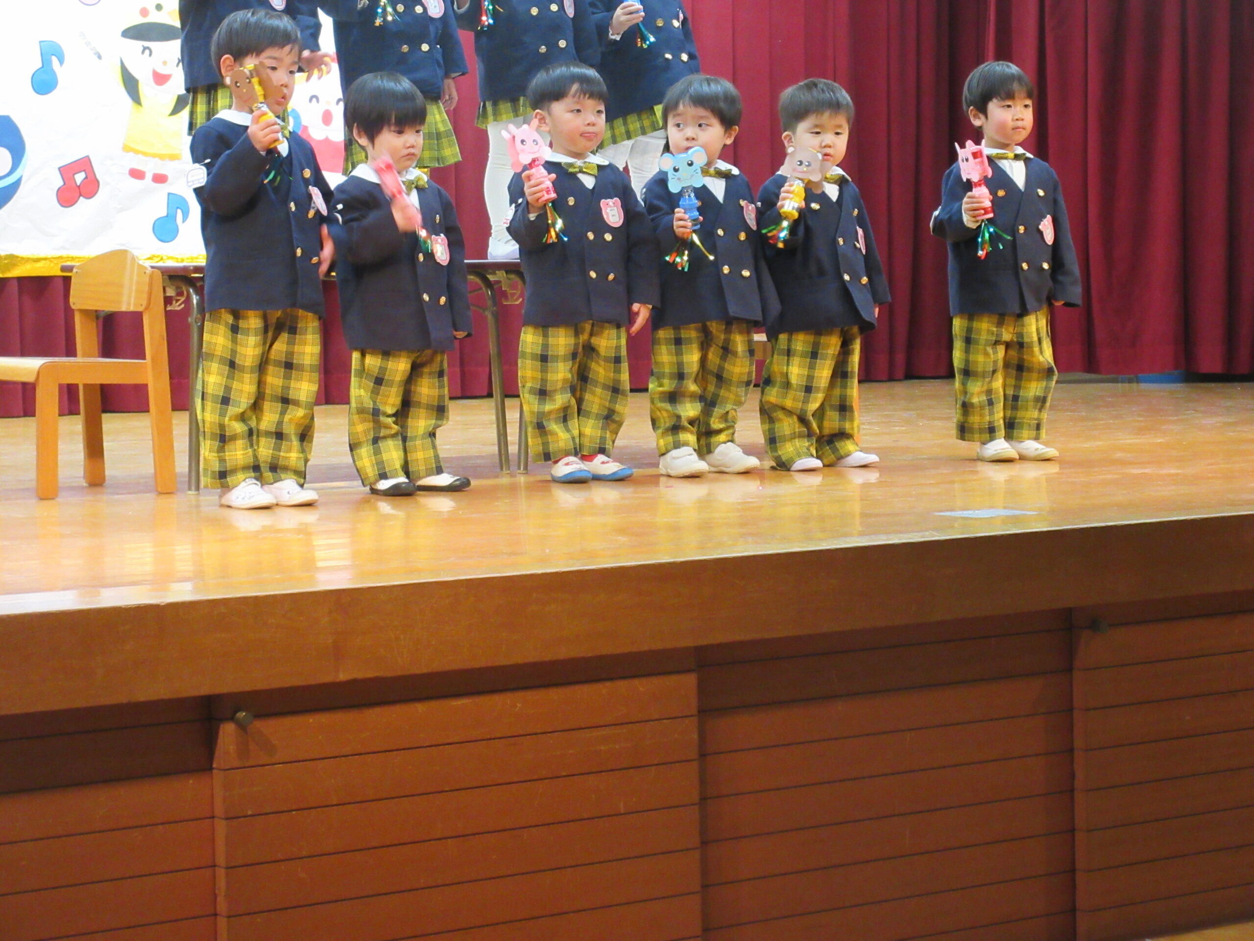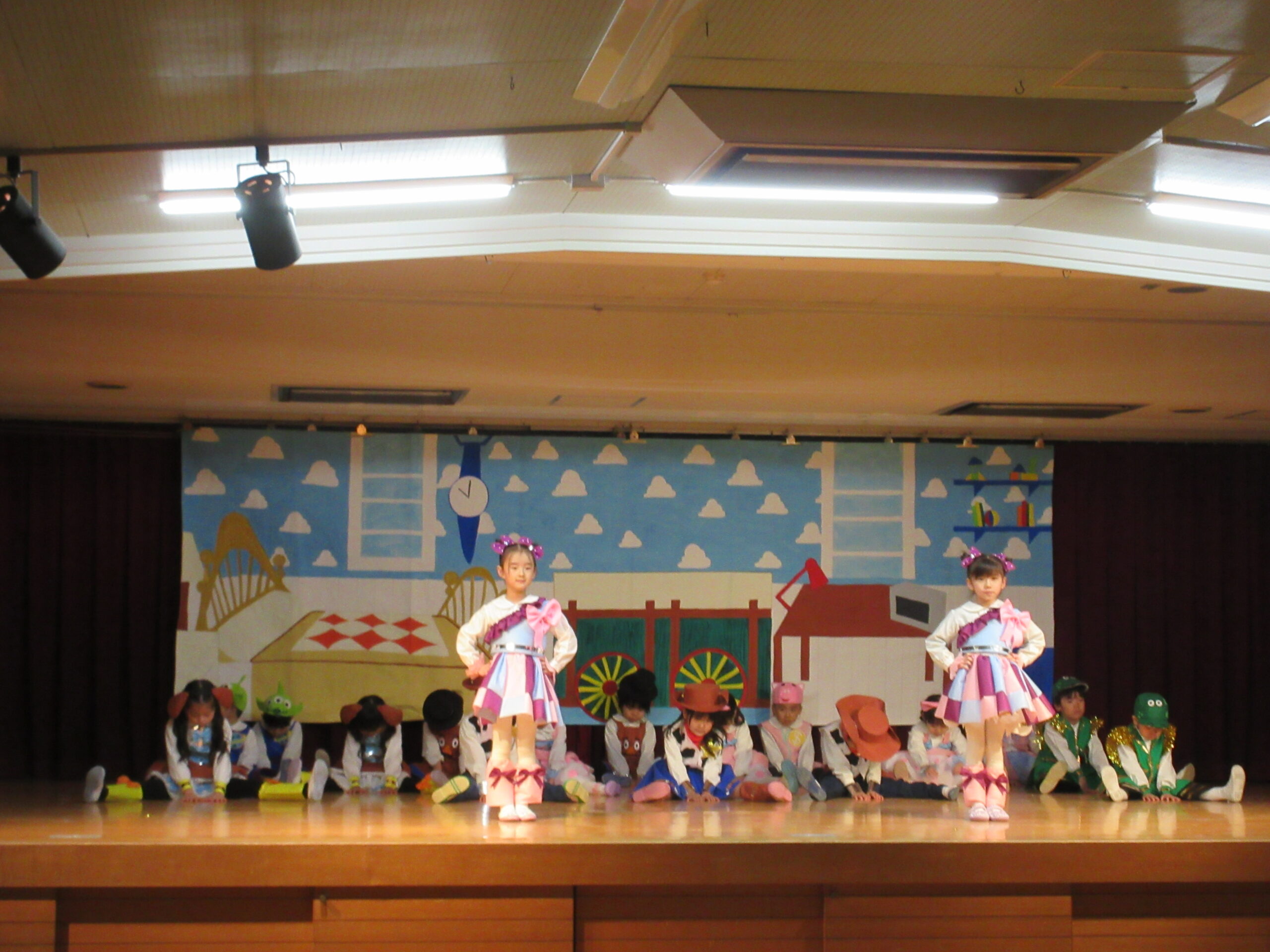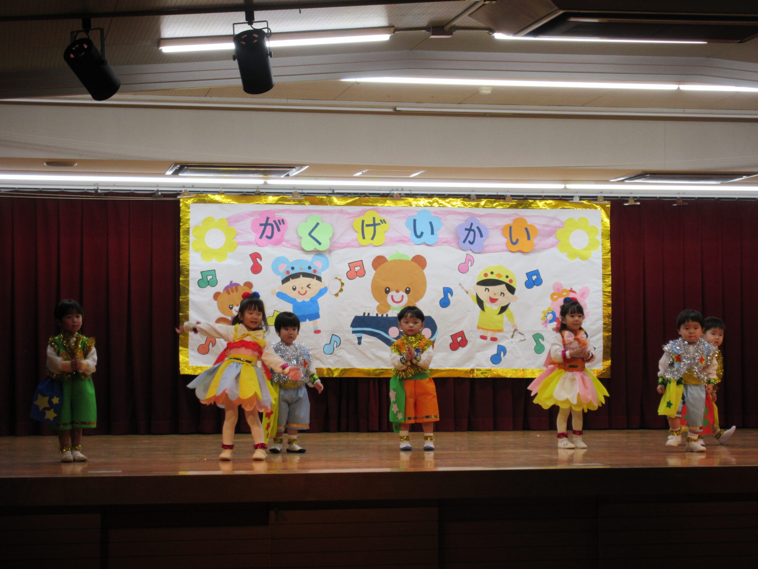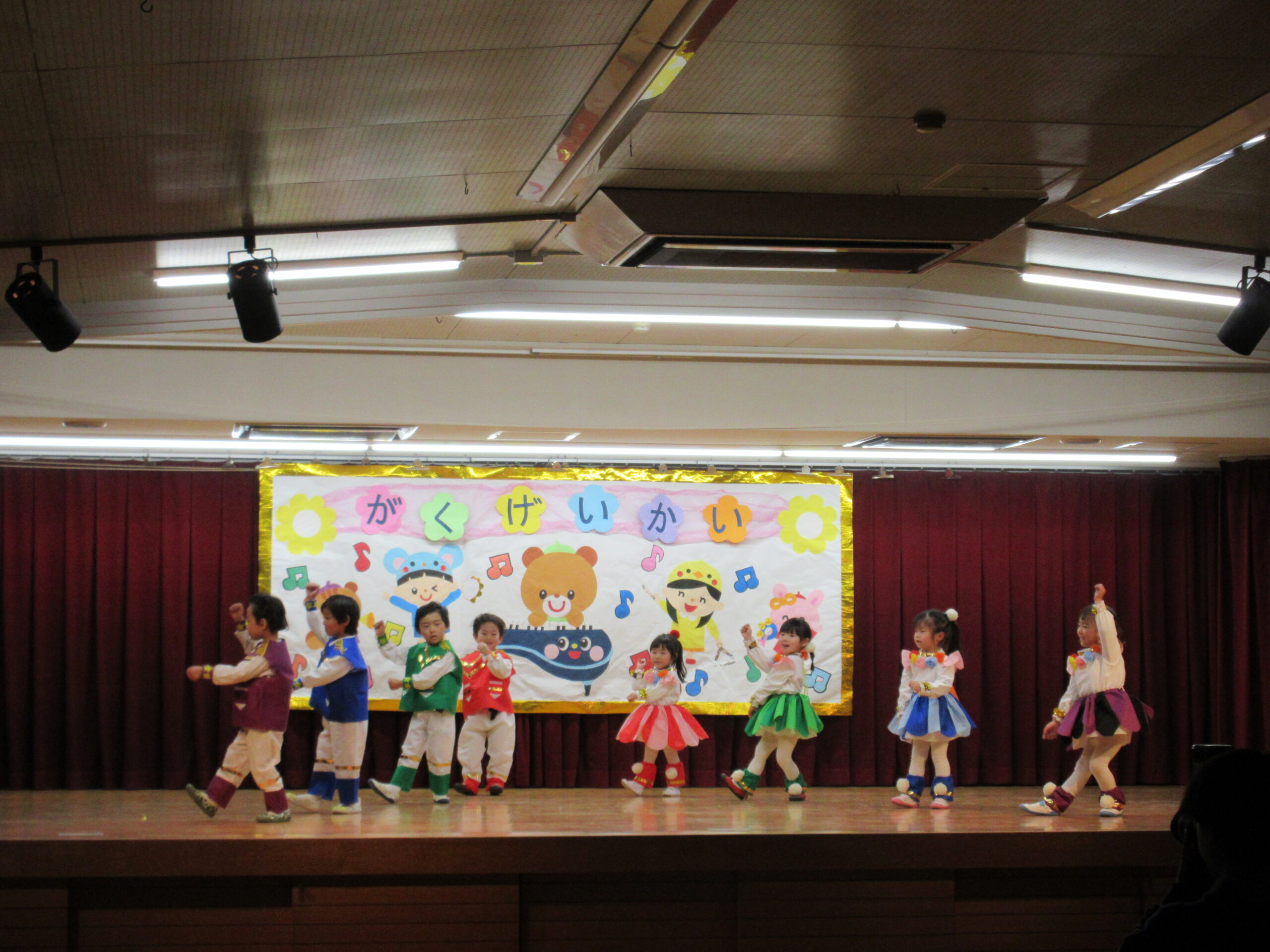 今日は学芸会の総練習があり、子どもたちは特別な衣装に身を包んで舞台に立ちました。