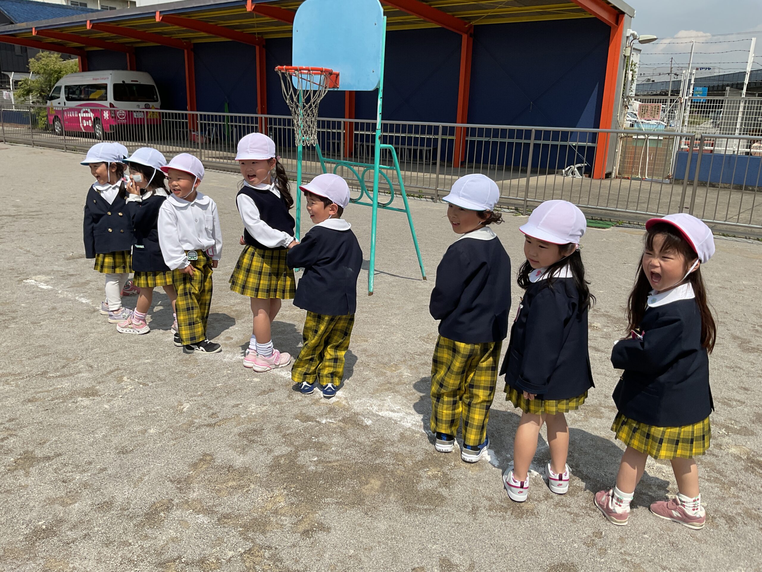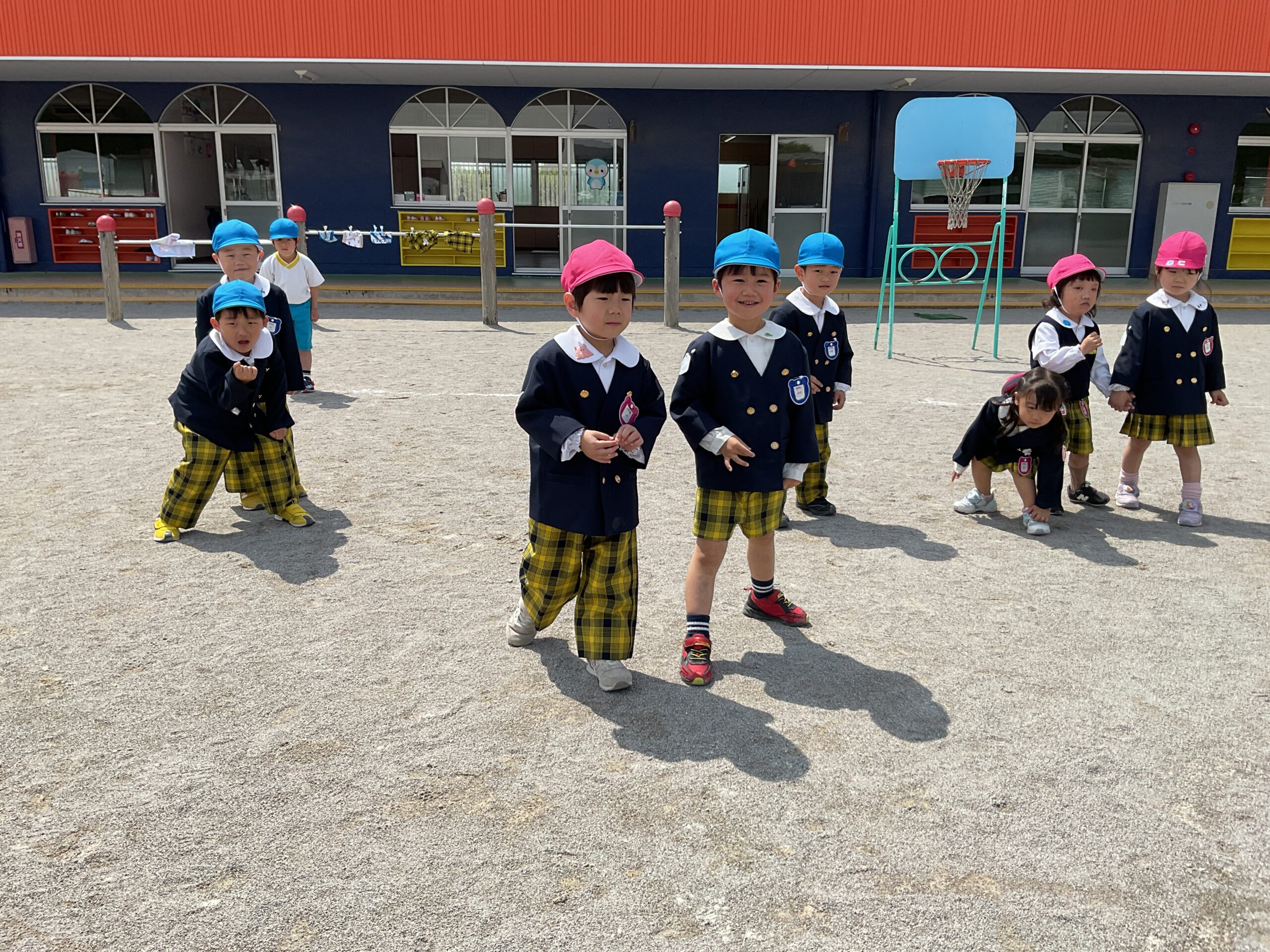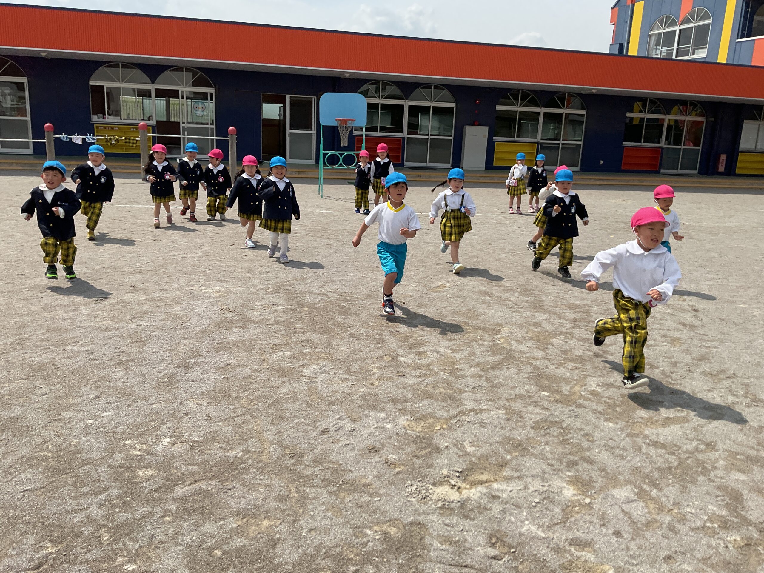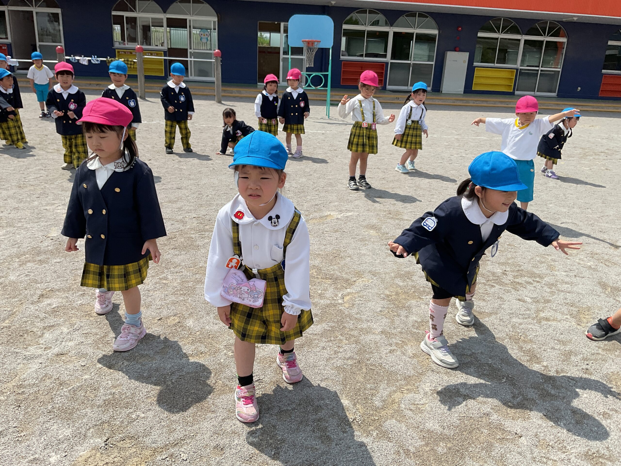 今日は、年中さんが合同で だるまさんがころんだ をして遊びました。 これまでにも何度か遊んでいたので、ルールもしっかり覚えていて、「止まる!」「動かないよ!」と声をかけ合いながら楽しむ姿が見られました。