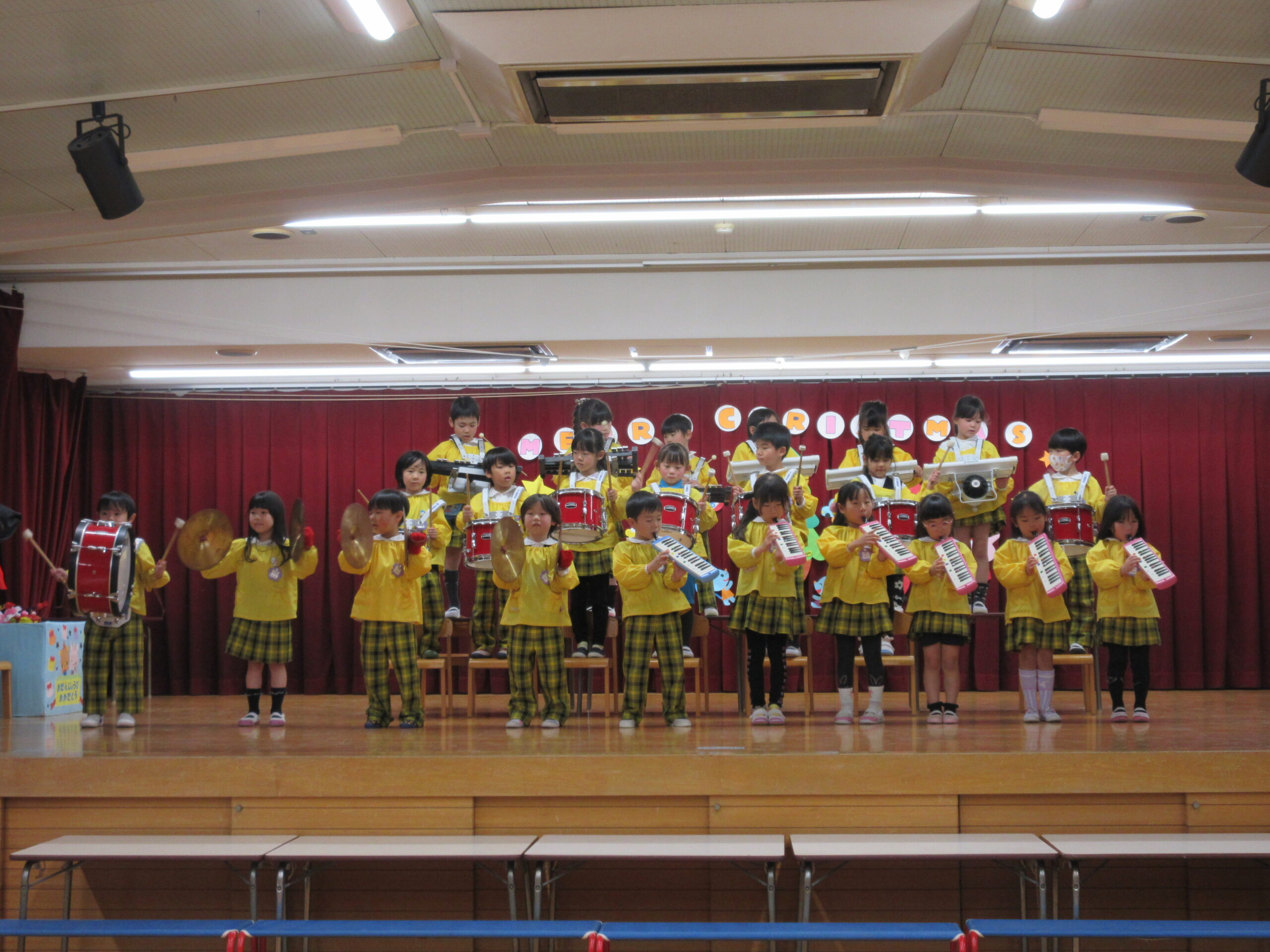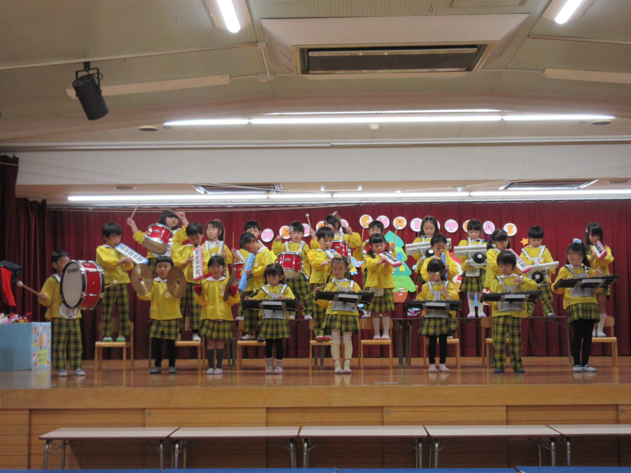 年長さんはそこで発表するハンドベルと楽器演奏の練習を行いました。