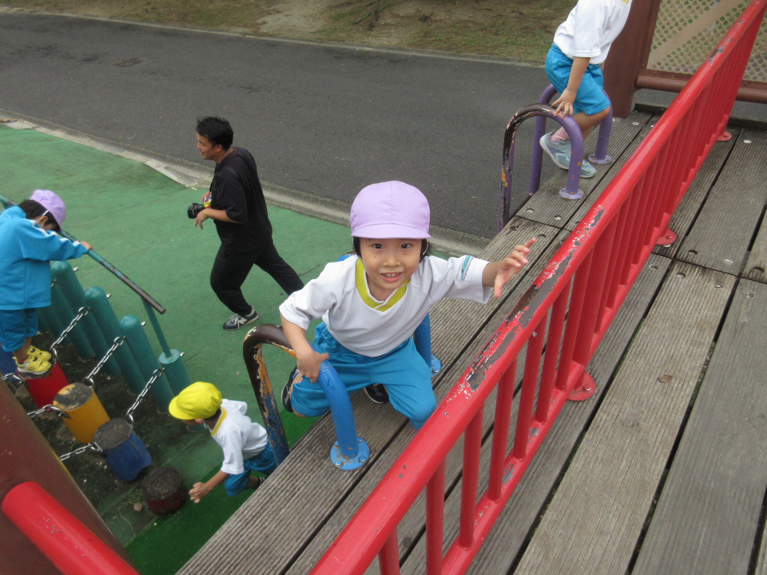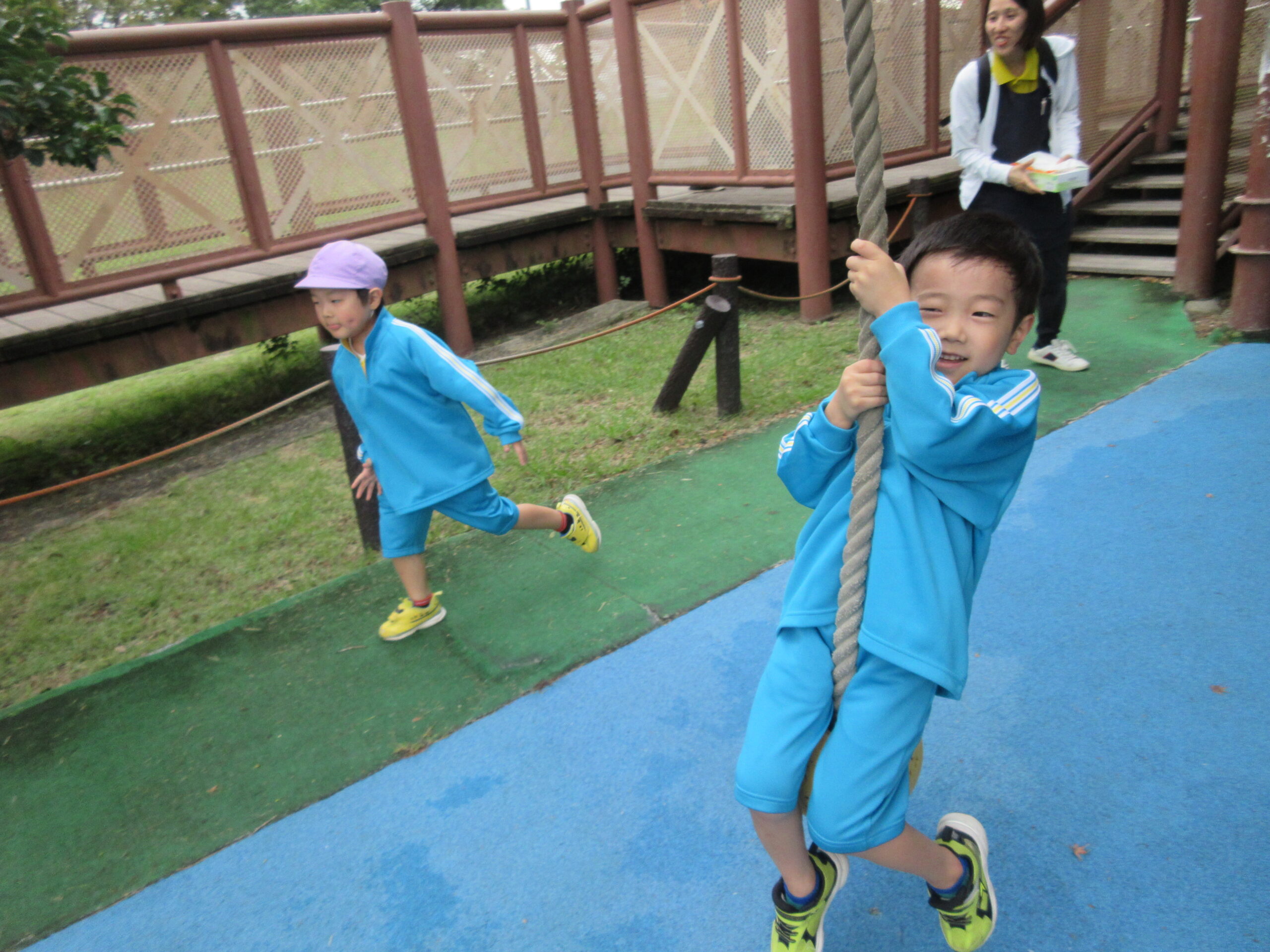 美味しいお弁当を食べた後は、思いきり遊具で遊びました。