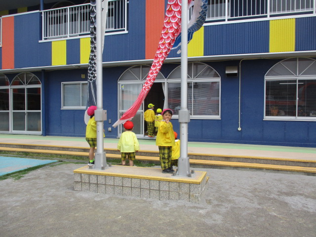 こいのぼりの尾に触ると「やったー!」「元気に泳いでるねー」と嬉しそうでした。