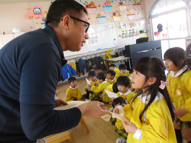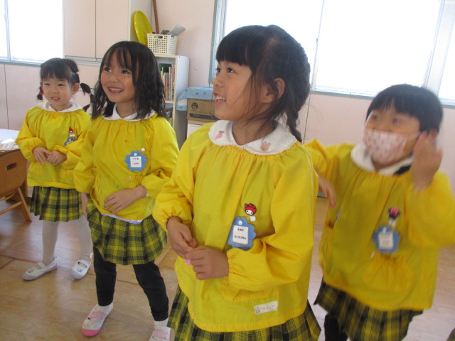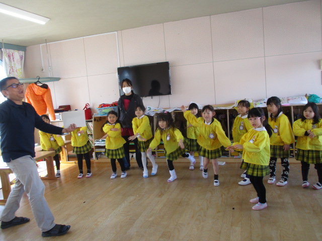 2026.03.11 英会話の様子です 本日は年中さん、年長さんの最後の英会話の日でした。 年長さんも体を動かし、とても楽しいそうです。 先生に修了証書をいただきました。 楽しく、元気に3年間英会話を行うことができましたね。