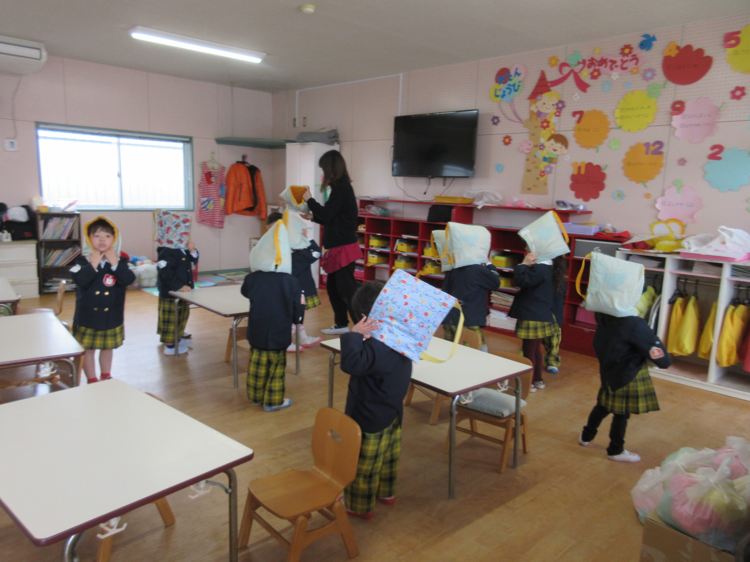 地震の音に驚きながらも、子どもたちは先生の話をよく聞いて行動できました。