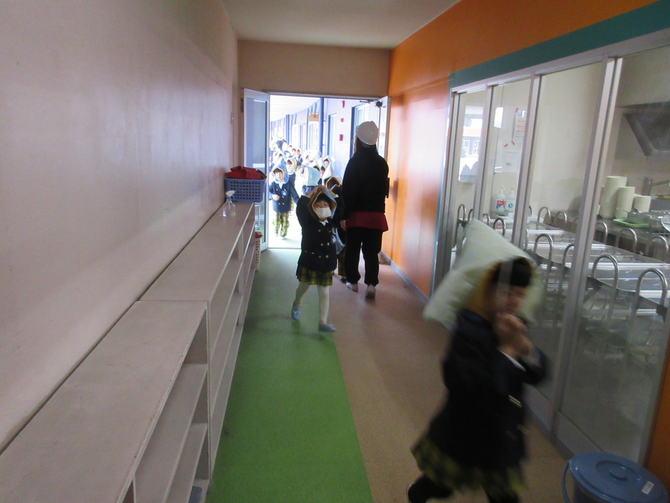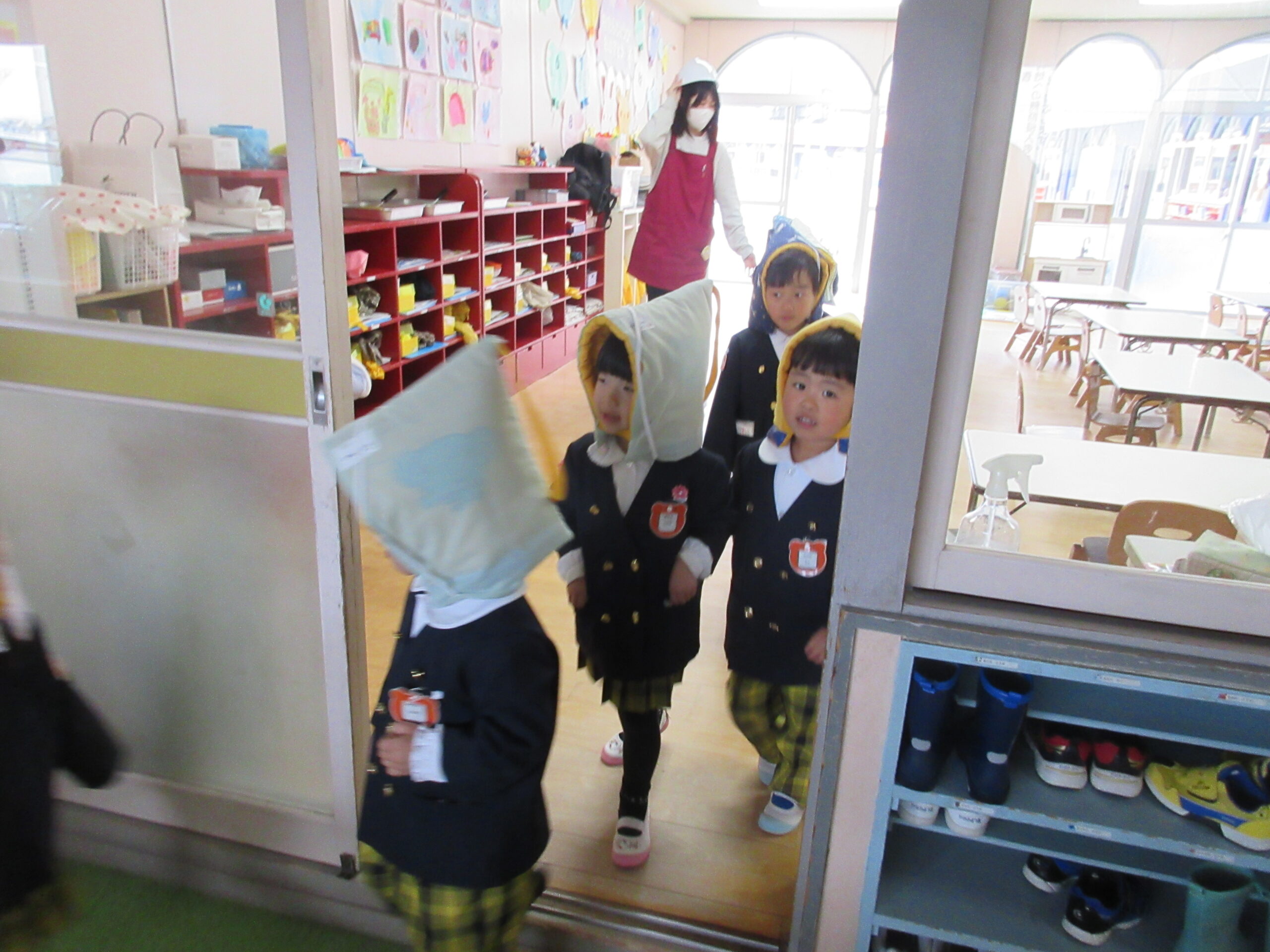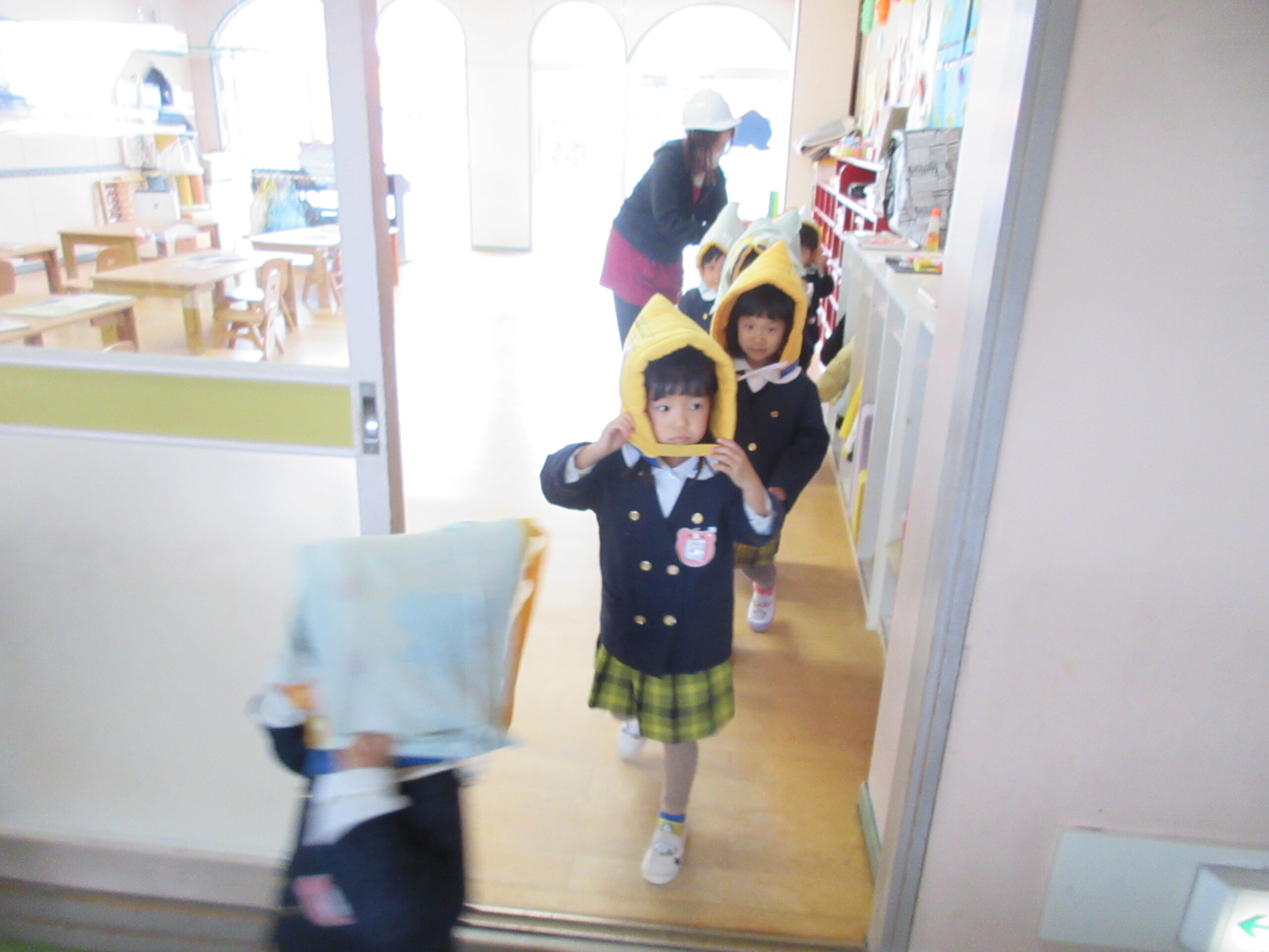 もも組さんも泣かずにしっかり歩いて避難する姿がとても立派でした。